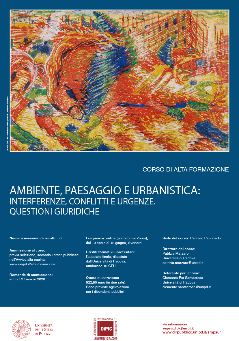 Il Corso intende offrire agli operatori pubblici e privati dei settori della tutela dell’ambiente e del paesaggio, della promozione delle energie rinnovabili e del governo del territorio, un’importante occasione di aggiornamento professionale e di approfondimento delle questioni giuridiche centrali e più attuali, alla luce delle recenti e rilevanti novità legislative e giurisprudenziali.